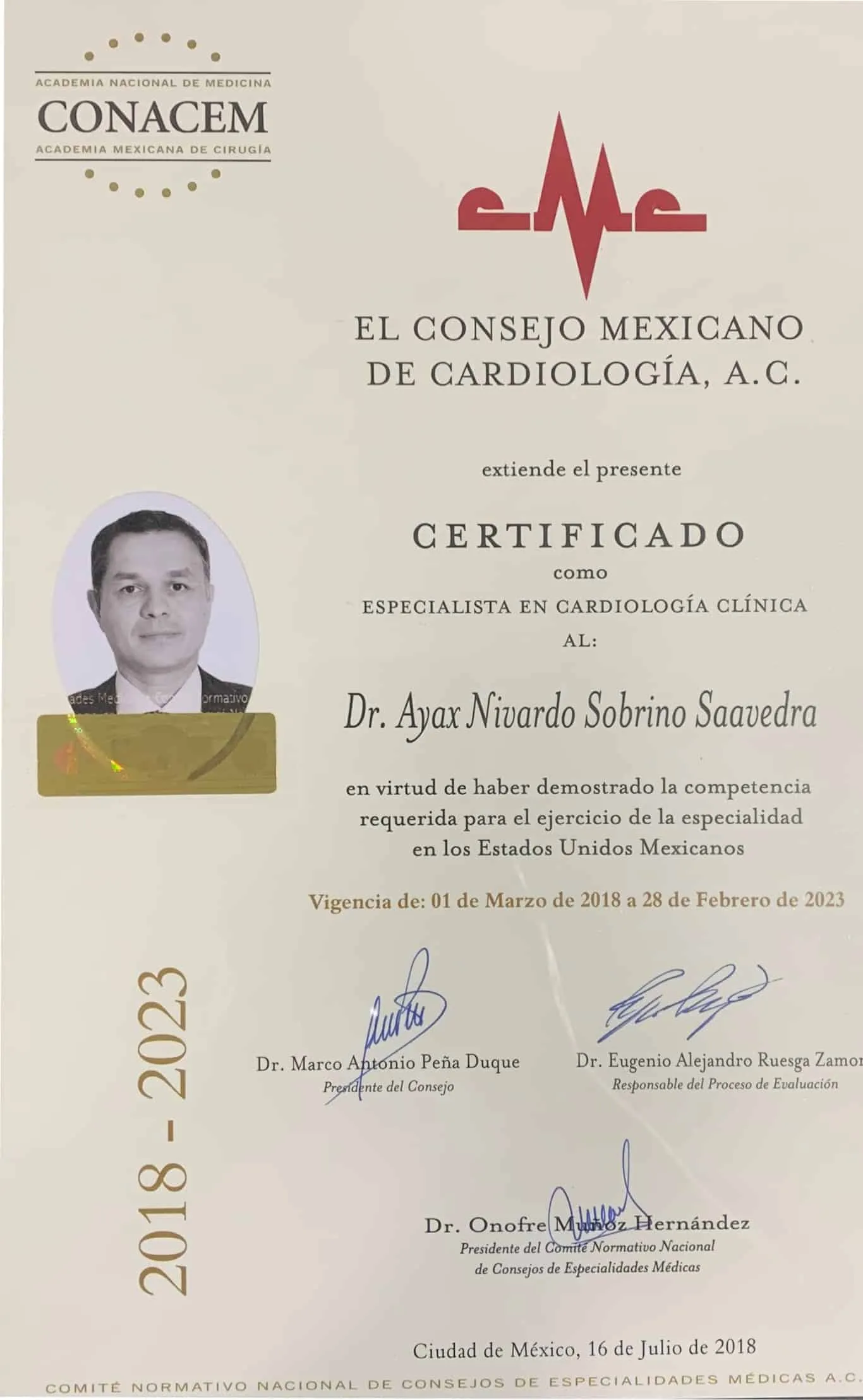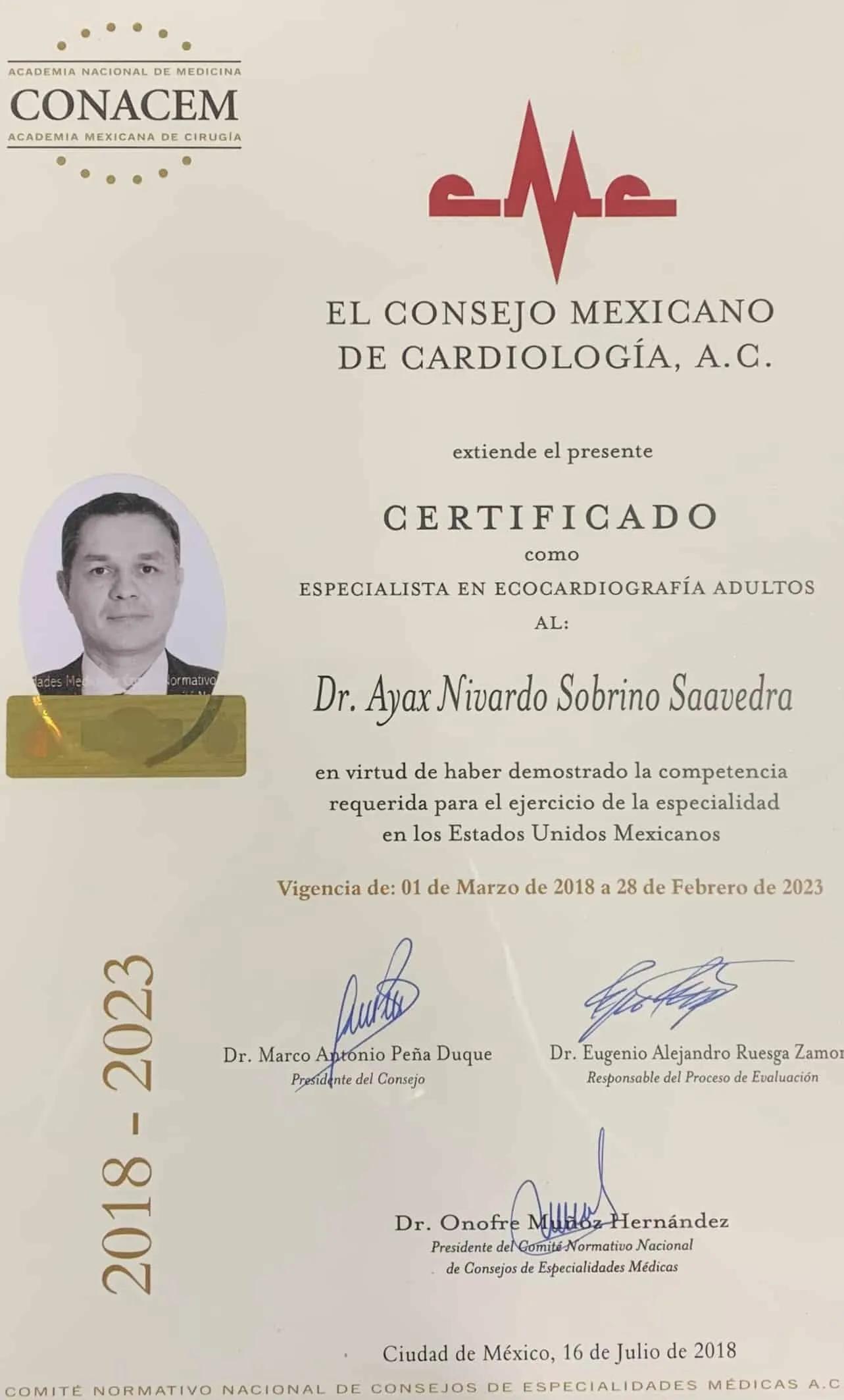 – Finally, it is very important to know if your Cardiologist in Ajijic have a current certification from the Mexican Council of Cardiology?